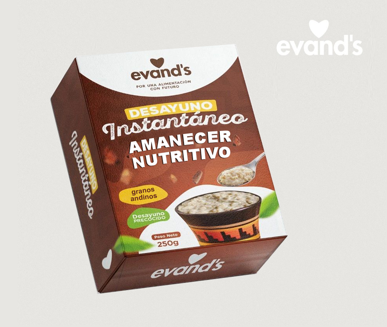 Desayuno instantáneo a base de granos andinos, harina de plátano, fresa deshidratada y azúcar de coco. Contenido neto: 250g.