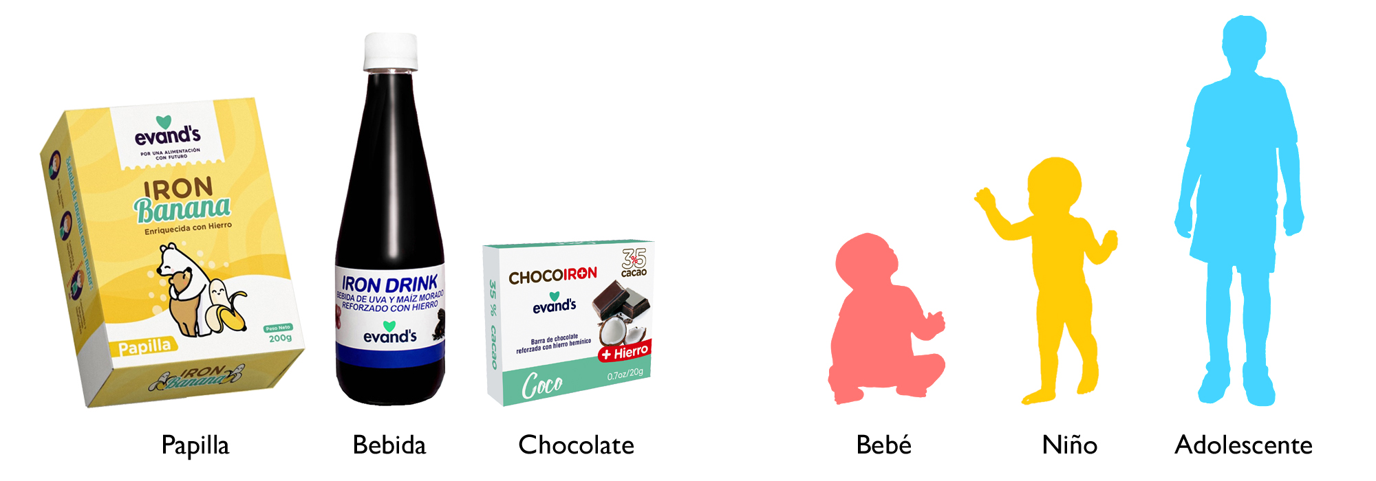 Productos reforzados con hierro para cada etapa del crecimiento del niño.